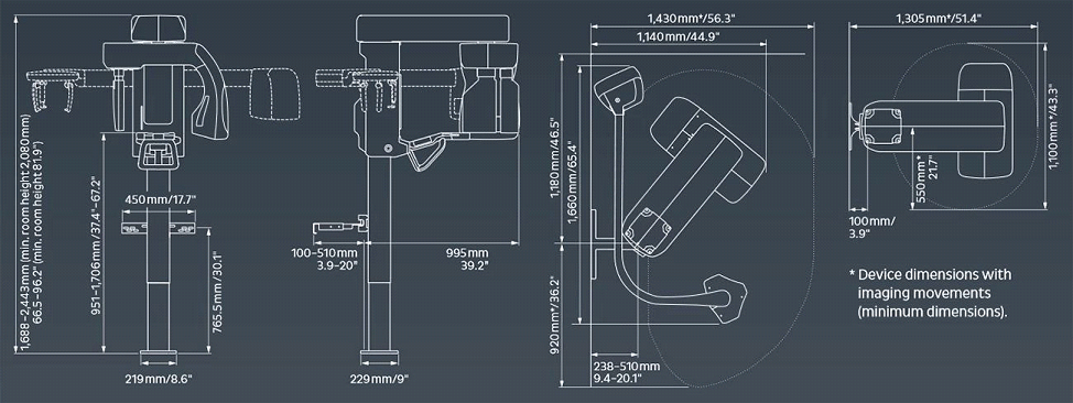- Цеф-проекции атеральная и детская латеральная с регулируемой шириной изображения, задне-передняя (PA)