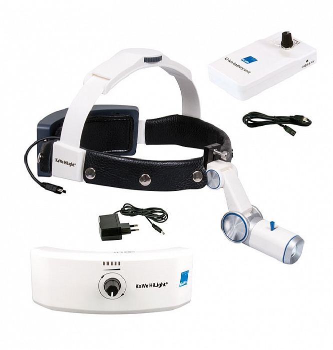 Налобный осветитель KaWe HiLight LED H-800 с аккумулятором для головного обруча и для крепления на ремень применяется в хирургии, стоматологии, ЛОР-практике и др.