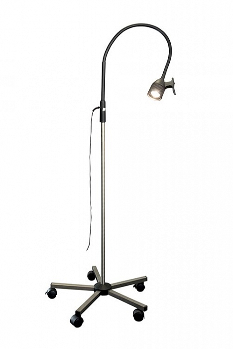 Передвижной галогенный светильник с мобильным основанием на 5-ти колесах, из высококачественной нержавеющей стали предназначен для кабинета гинеколога, уролога, отоларинголога, офтальмолога, как дополнительный источник света при малоинвазивных операциях.