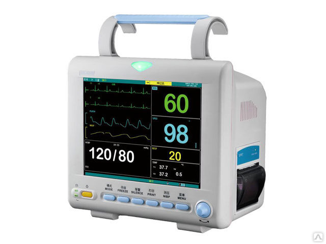Монитор предназначен для контроля частоты сердечных сокращений и пульса пациента, неинвазивное измерение артериального давления, частоты дыхания, ЭКГ и температуры.