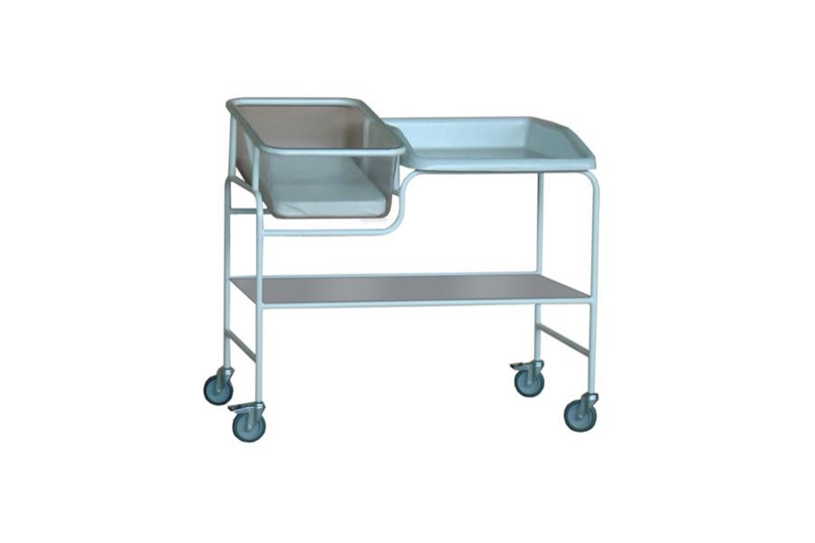 Металлический каркас выполнен из круглой трубы Ø 20. Полка изготовлена из нержавеющей стали. Столешница изготовлена из высокопрочного пластика. Ванна–кювета съемная, изготовлена из высокопрочного прозрачного пластика.