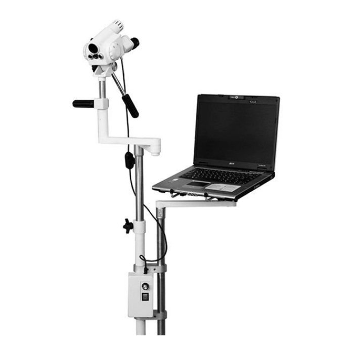 Бинокулярный окуляр с регулируемым межзрачковым расстоянием и диоптрийной коррекцией адаптирован под индивидуальные потребности врача. Устройство также имеет эргономичную конструкцию, устойчивую базу и дополнительные настройки для повышения комфорта при длительных обследованиях.