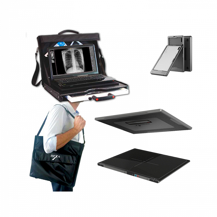 Уникальное решение для проведения диагностики в полевых условиях. Включает в себя аккумуляторный рентген-аппарат Econet meX+20BT/40BT, беспроводной детектор Rayence 1417WCC. А так же складную мебель удобную для транспортировки: мобильная стойка PXMS-1800, переносная грудная стойка M-D-S 200 и мобильный рентгеновский стол.