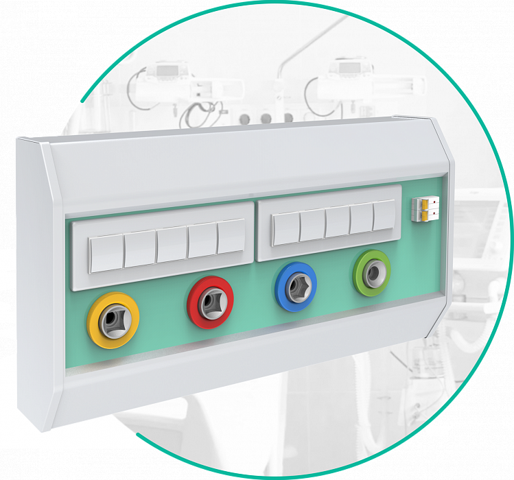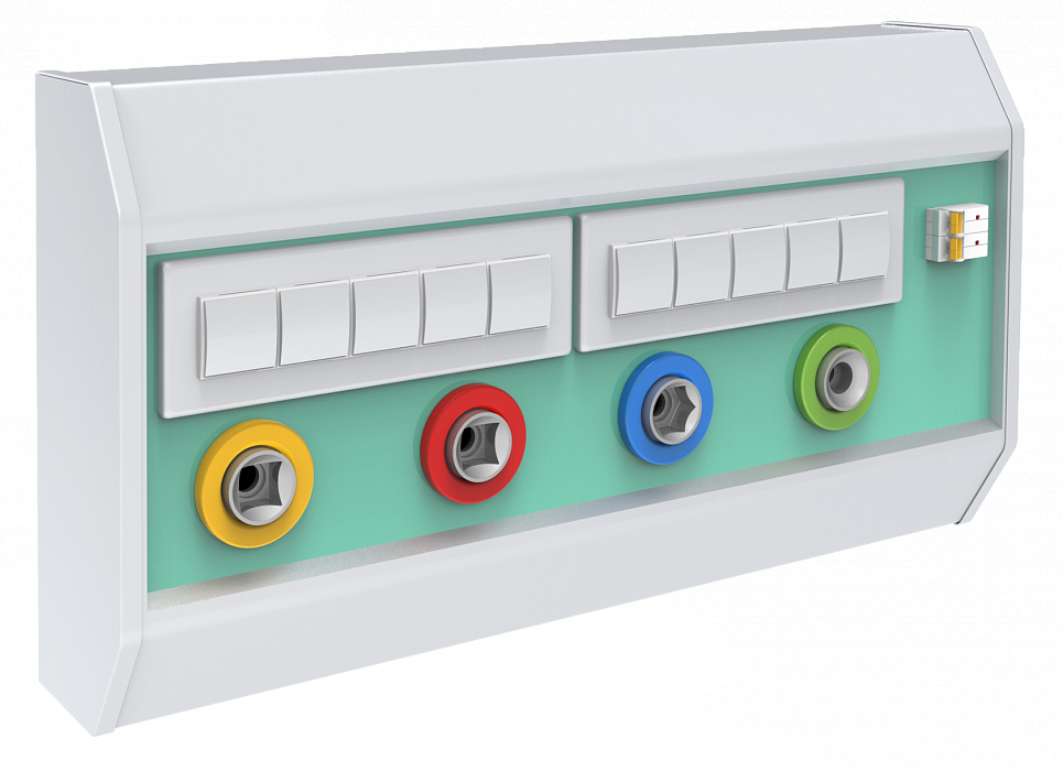 - блок из 4-х электрических розеток с индикатором наличия электрического питания в сети и клеммами заземления;