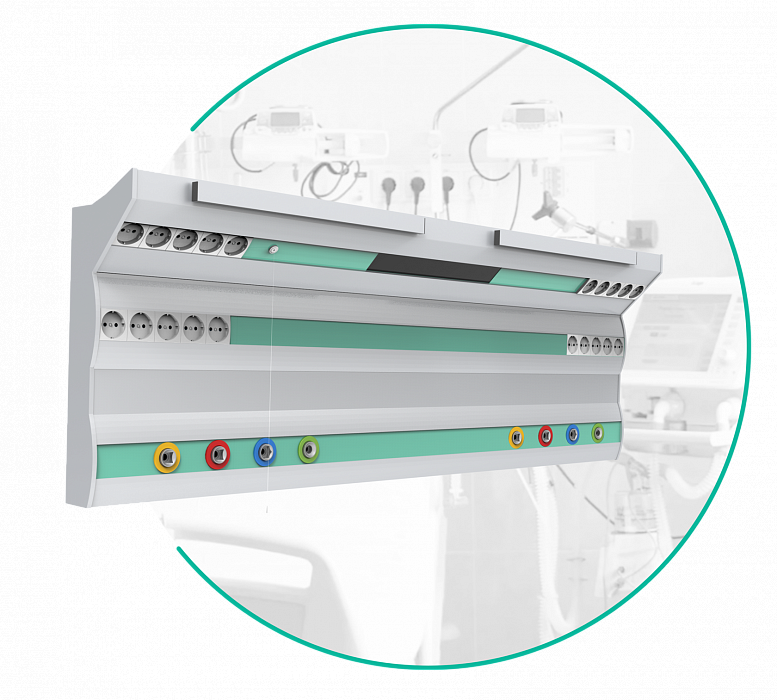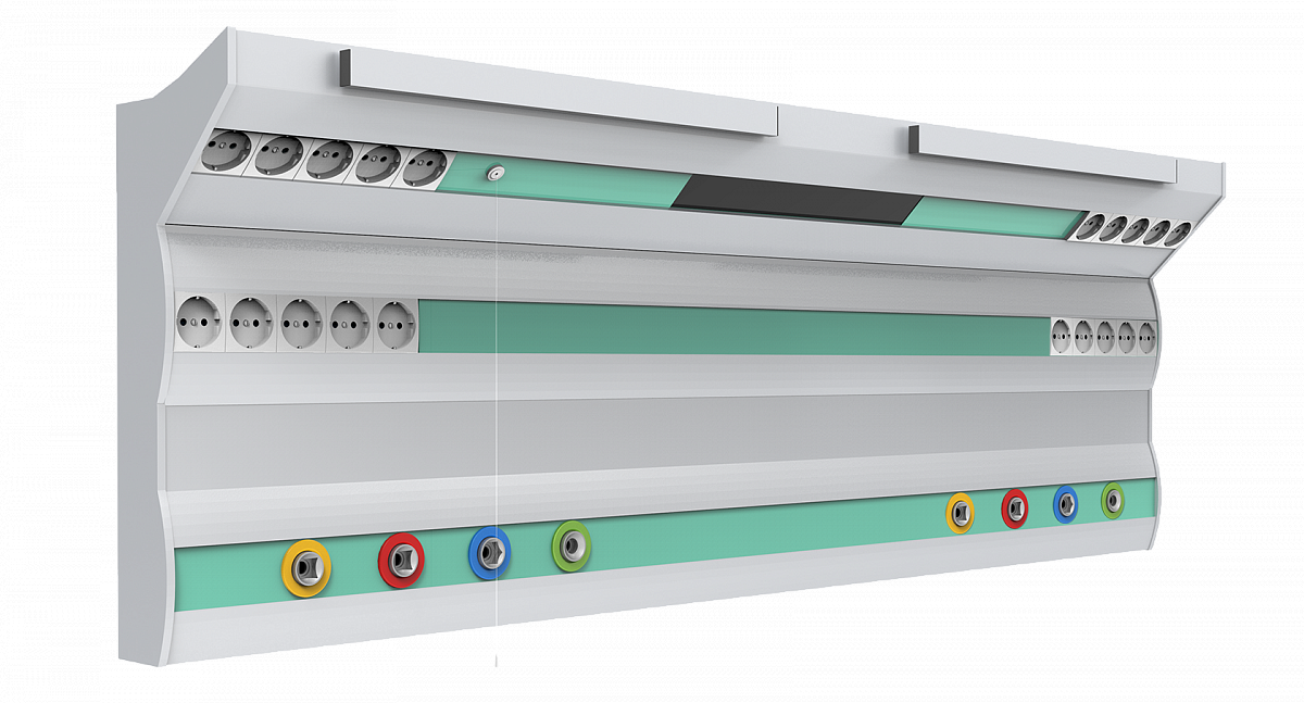 - 4 блока из 5-х электрических розеток с индикатором наличия электрического питания в сети и клеммами заземления;