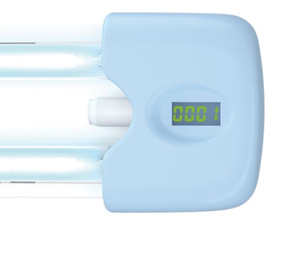 - Облучатель оснащается электронным счетчиком наработки часов бактерицидных ламп с возможностью сброса показаний.