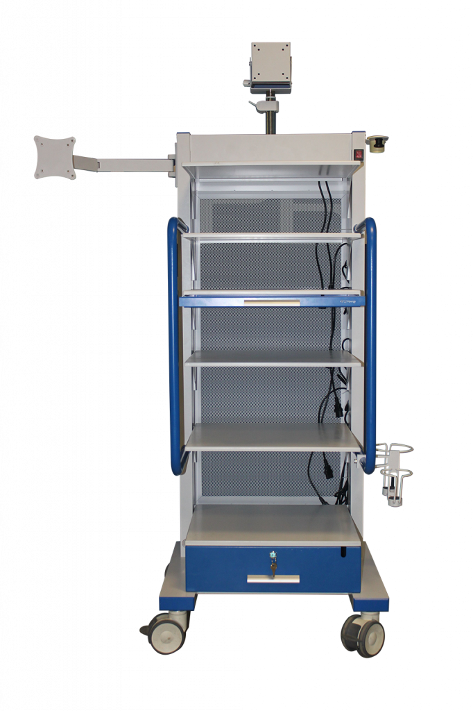 Тележка может иметь любое количество полок и держателей, необходимых для размещения эндоскопического оборудования.