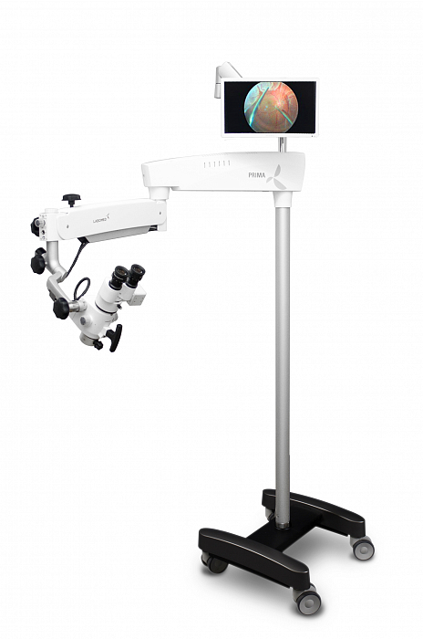 через делитель луча, что позволяет врачу проводить диагностику и операцию оптически и
