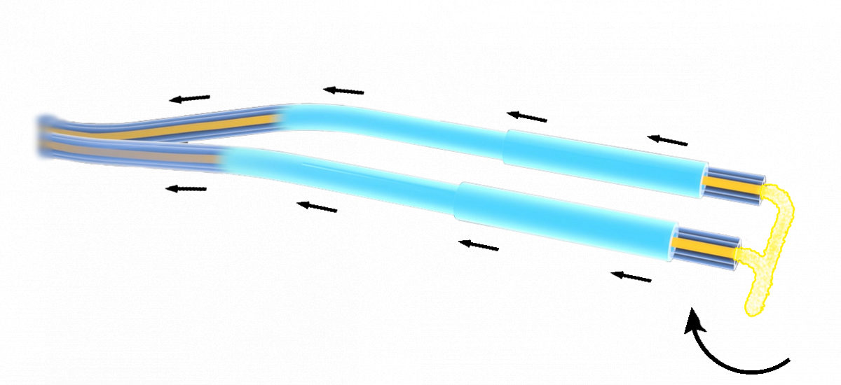 Биполярная плазма в отличии от гибридных решений рынка. Плазма на двух концах электрода, которые составляют две полярности биполярного режима. Электрическая петля между активным и пассивным контактами реализована внутри одного электрода. Возврат мощности происходит внутри электрода.