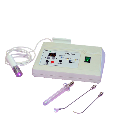 - Аппарат "ЛАЗУРИТ" предназначен для воздействия лазерным излучением фиолетовой области спектра на патологическую область с целью использования бактерицидного эффекта при лечении воспалительных и гнойных заболеваний различной этиологии, например, в оториноларингологии, стоматологии и других областях медицины.