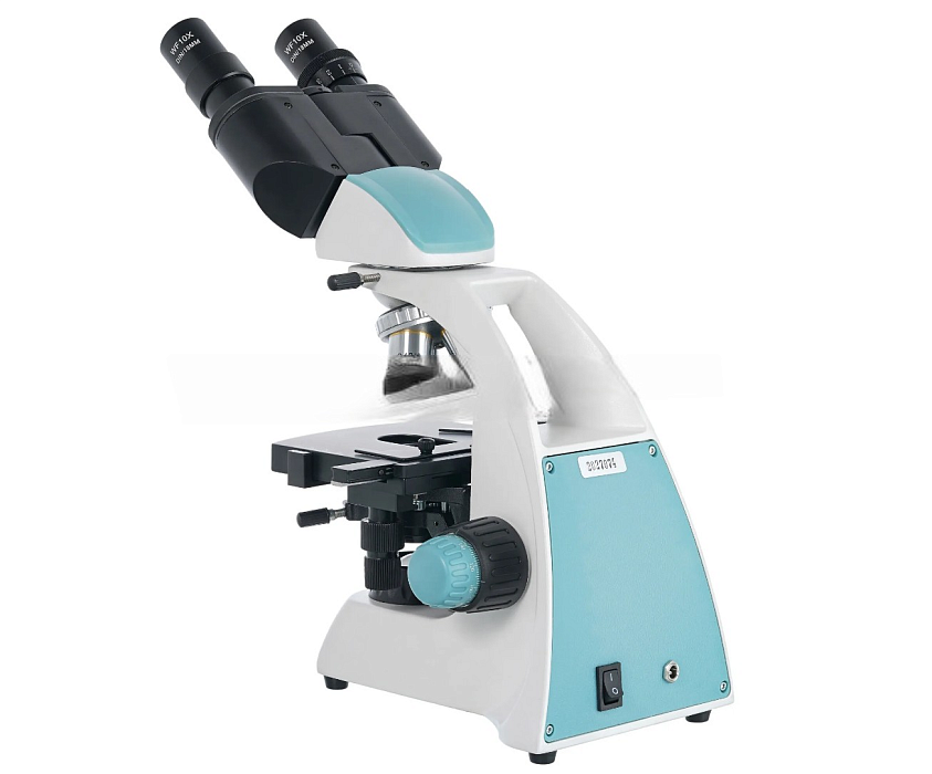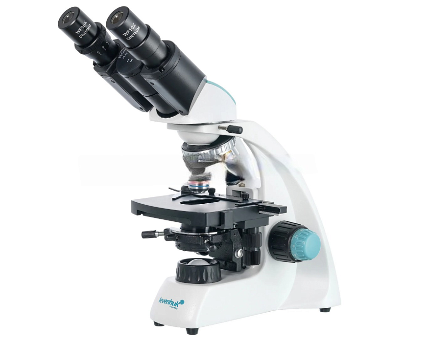Поворотную насадку можно вращать на 360°, бинокулярный визуальный узел имеет удобный для длительной работы наклон в 30°. Окуляры широкопольные и дают увеличение в 10 крат, револьверное устройство вмещает четыре объектива – в него уже установлены ахроматические объективы с увеличением 4х, 10х, 40х и 100х. 100-кратный объектив можно использовать для масляной иммерсии. Обратите внимание, что объективы 40х и 100х имеют специальные пружинящие оправы, защищающие переднюю линзу от случайных повреждений.