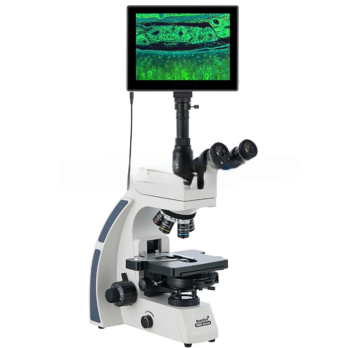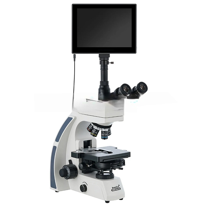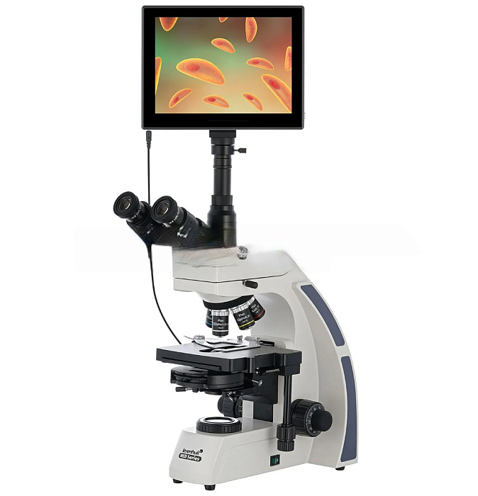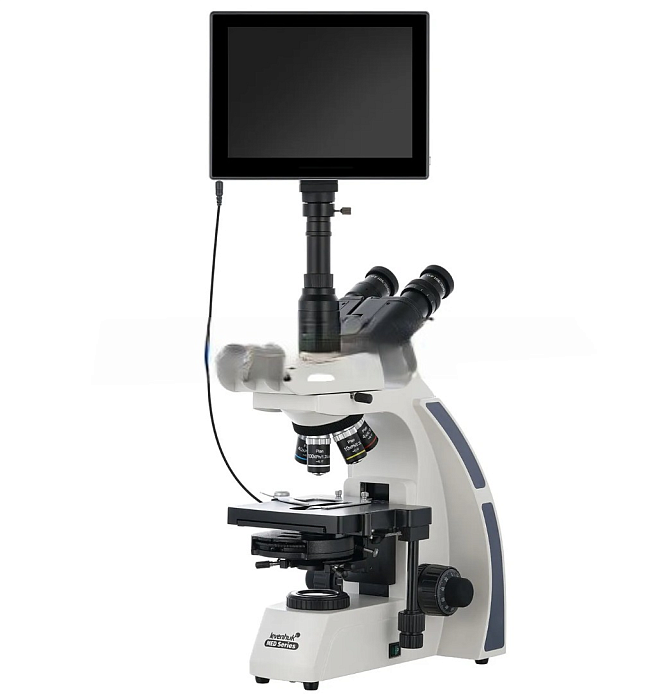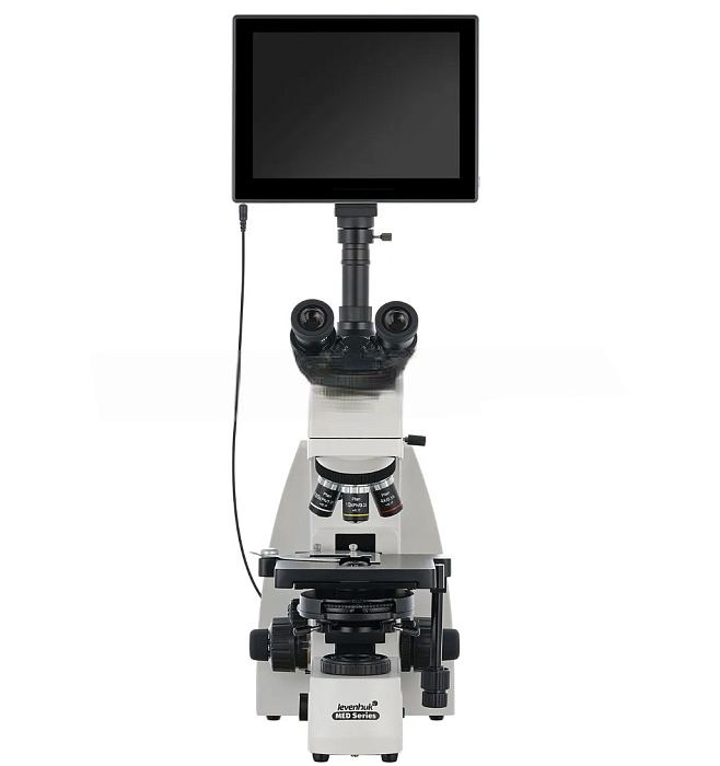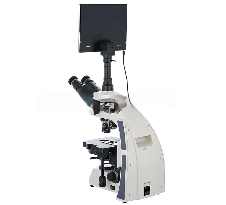 Цифровая камера делает работу в лаборатории легкой и удобной, так как позволяет вести исследования, смотря не в окуляры, а на встроенный ЖК-экран с сенсорным управлением, а это значительно снижает нагрузку на зрение. Камера позволяет снимать фото и видео и выводить картинку на встроенный или внешний экран. Она совместима с дополнительными аксессуарами: наушниками, компьютерной мышью, клавиатурой. Записывать материалы можно или во встроенную память, или на внешние накопители данных. С помощью установленного ПО можно корректировать размер, яркость, контрастность, гамму, резкость и насыщенность изображения, менять время выдержки и баланс белого, проводить калибровку камеры с объективами, измерять образцы или отдельные структуры (доступно несколько единиц измерения). Кроме того, программа позволяет проводить анализ частиц.Удобная работа с микропрепаратами