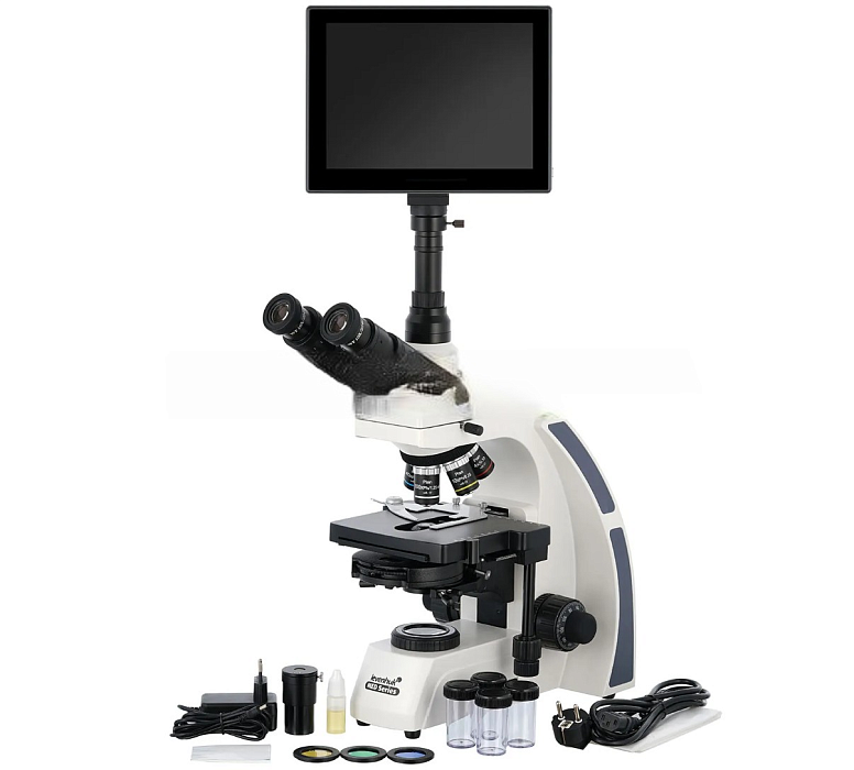 - Тринокулярный микроскоп с увеличением от 40 до 1000 крат
