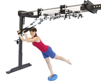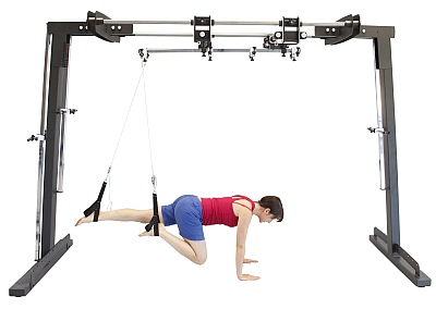 - наличие в комплекте огромного количества принадлежностей: блоки с самофиксацией, резиновые подвесы, блоки для изменения направления тяги, валик, неустойчивые опоры (подушки), манжеты для фиксации (ноги, руки, туловище, голова), стойка для размещения принадлежностей