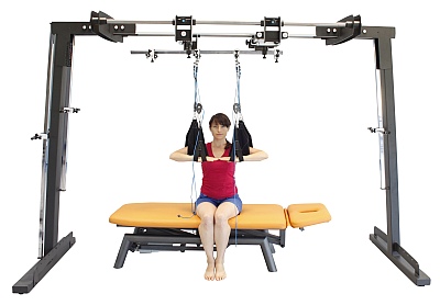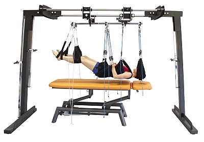 - Поясничный отдел позвоночника: сгибание туловища на бок, укрепление осанки, тракция, трехмерное подвешивание для снижения боли, сгибание-разгибание и др.