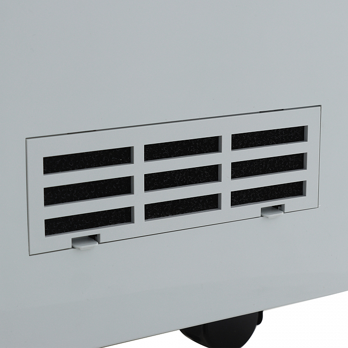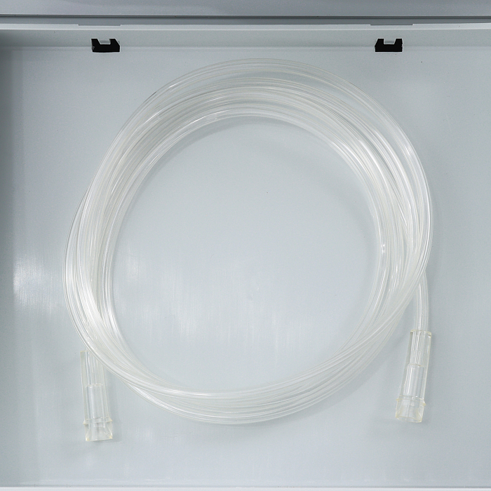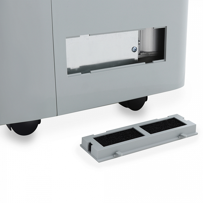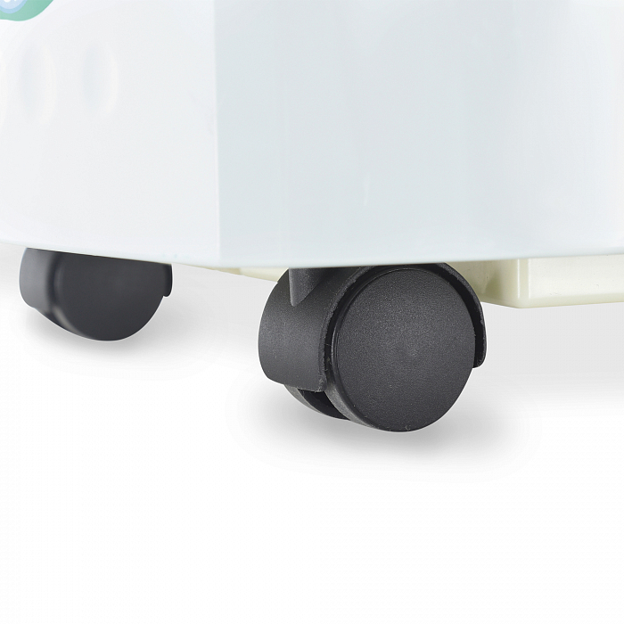 - Модель имеет вместительный отсек для хранения комплектующих и аксессуаров. Это решение позволяет поддерживать порядок в больничной палате, повышает комфорт при хранении, транспортировке и эксплуатации оборудования. Для быстрого и удобного перемещения прибор снабжён четырьмя самоориентирующимися колёсами.
