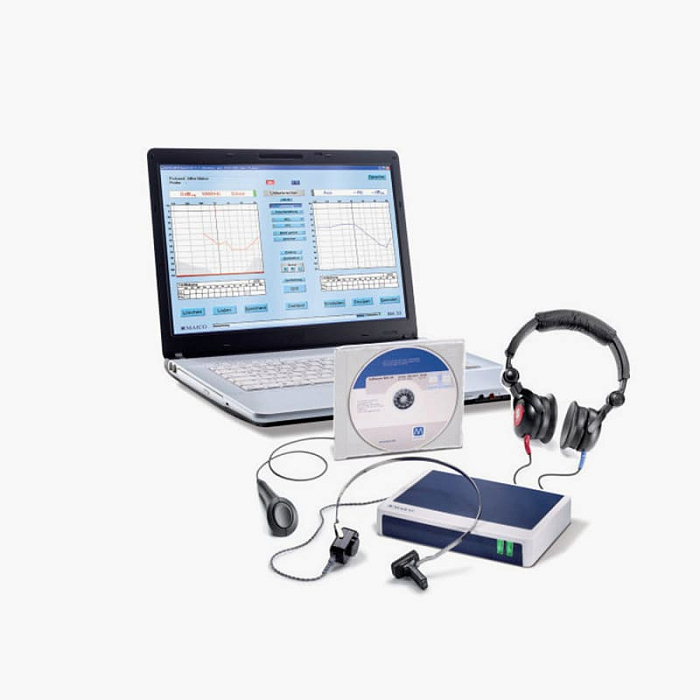 Ультралегкий портативный ПК-управляемый аудиометр миниатюрных размеров с воздушным звукопроведением (от -10 до 100 дБ) в частотном диапазоне (от 125 до 8000 Гц), тон, пульс, трель и костным звукопроведением. Имеется функция маскировки и SISI тест. Легко комбинируется с ноутбуком.