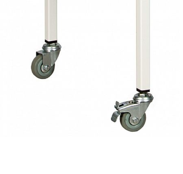 - Имеет 4 колеса из немаркой серой резины D= 50 мм, два из которых снабжены тормозом.