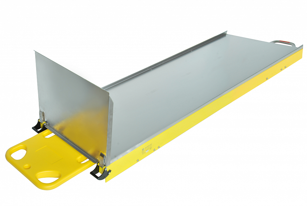 Приемное устройство предназначено для облегчения загрузки и фиксации носилок в автомобиле скорой помощи. Изготовлено из нержавеющей стали.