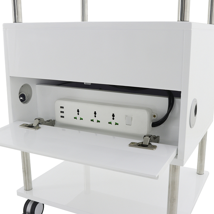 - Выдвижная полка с УФ стерилизатором используется для стерилизации необходимых инструментов