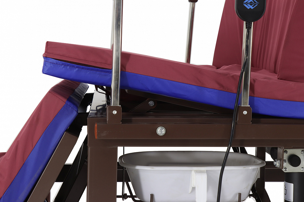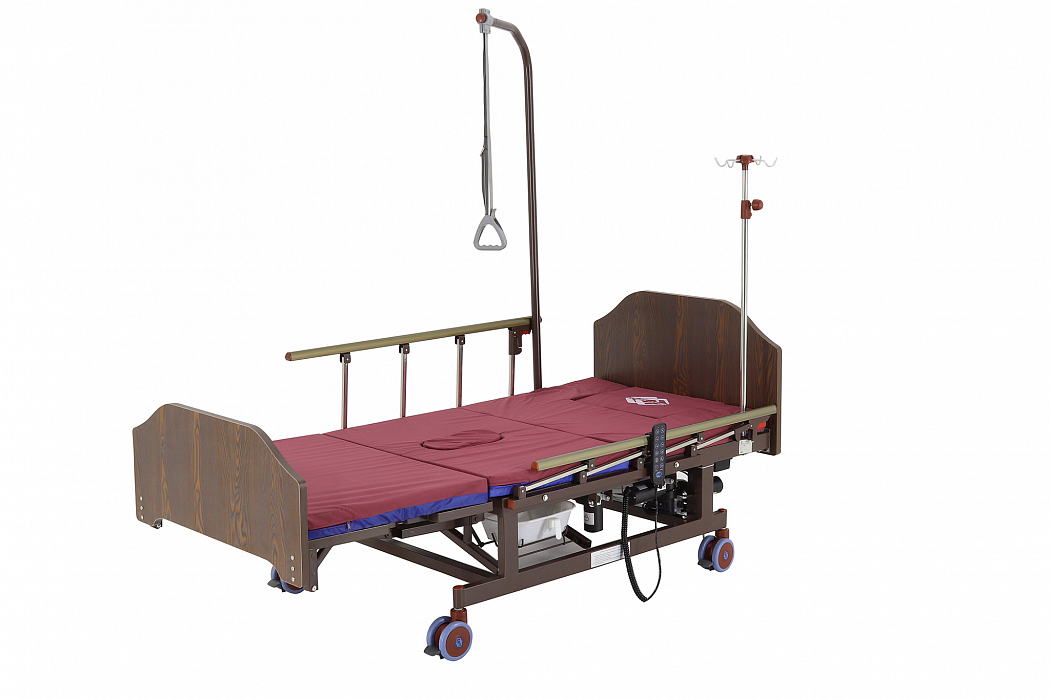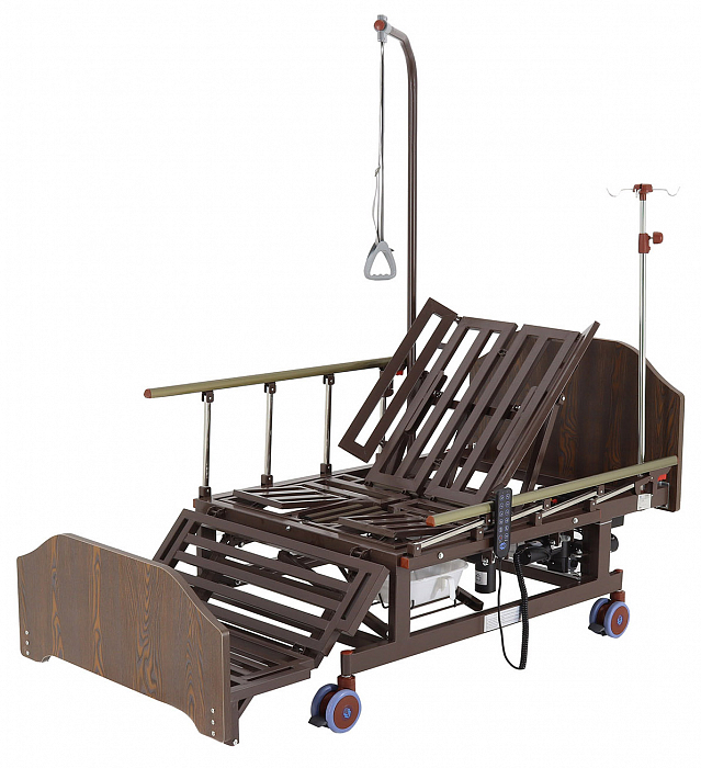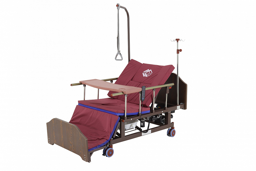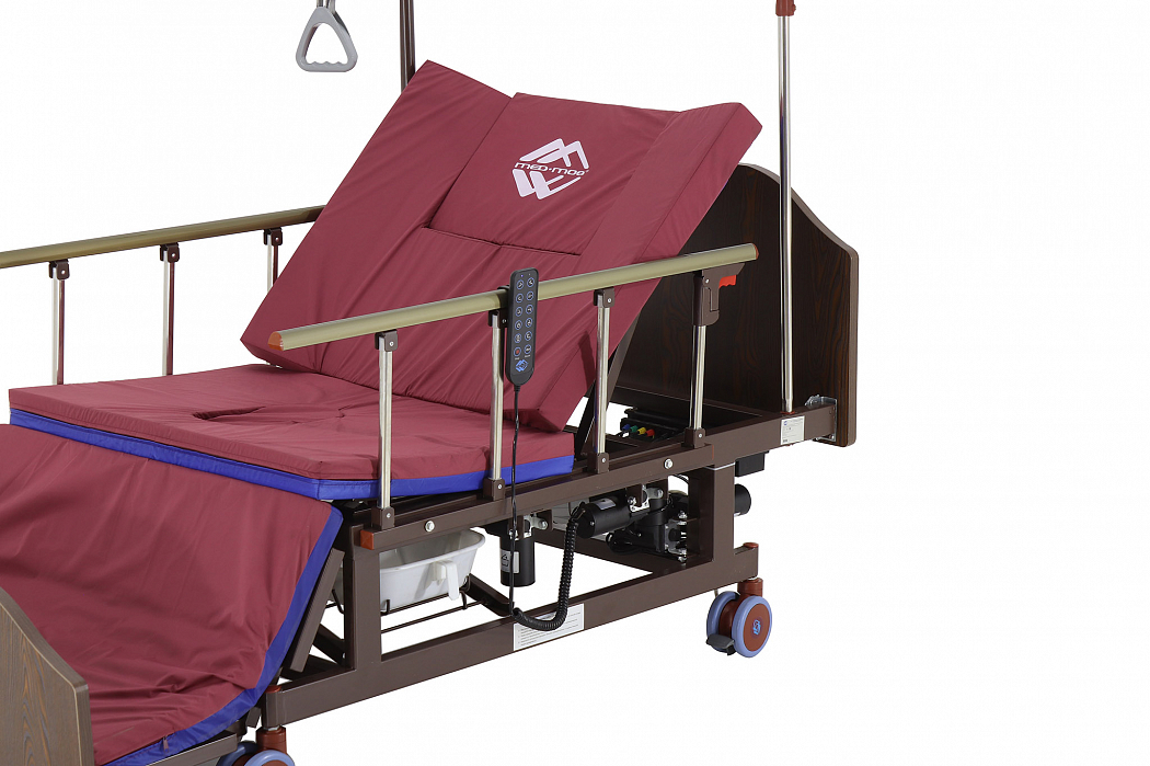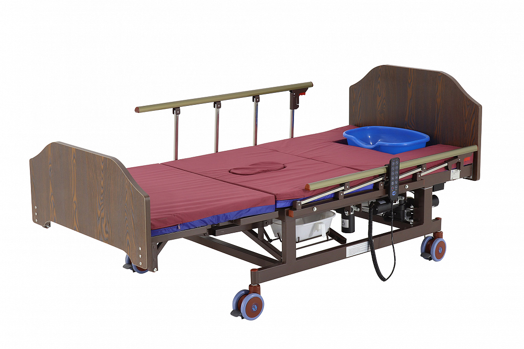 Конструкция кровати электрической DB-11А с боковым переворачиванием, туалетным устройством и функцией «кардиокресло» сделана так, чтобы обеспечить максимальное удобство пациенту и персоналу, который ухаживает за ним. Так, главными преимуществами кровати являются наличие бокового переворачивания, опции «кардиокресла» и туалетного устройства. Модель – электрическая. С помощью встроенных моторов можно регулировать положение секций кровати, создавая комфортные условия для пациента. Есть возможность регулировки ножной, спинной, коленной секций, встроена функция подъема головы и ног.