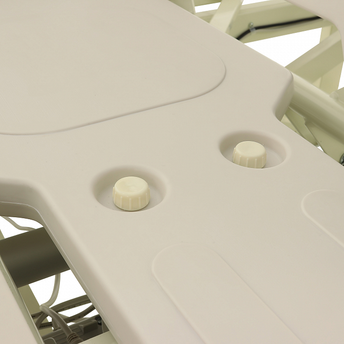 DB-2 (MЕ-4059П-01) – современная медицинская кровать с широким набором функций и удобной системой управления. Ложе кровати состоит из 4 секций, изготовленных их ABS пластика. В модели предусмотрена возможность удлинения ложа на 18 см. Икроножная и спинная секции имеют вентиляционные отверстия для поддержания комфортного микроклимата спального места.