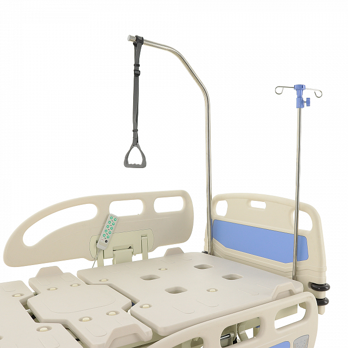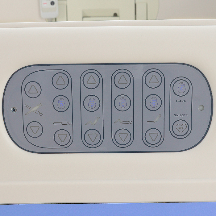 Благодаря удобной системе управления менять положение кровати может как медицинский работник, так и сам пациент. Большой пульт с цветным дисплеем предназначен для медперсонала. На экране пульта отображается информация о текущих настройках оборудования, показана функция, которая выполняется в данный момент, и углы наклона всех секций кровати. Малый пульт используется пациентом и позволяет изменить положение секций, высоту ложа или воспользоваться кнопкой «автоконтур». Функционалом кровати можно также управлять с помощью панелей, встроенных в боковые ограждения.