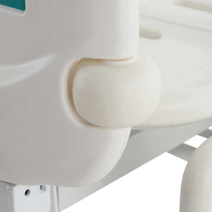 Спинки торцевые: быстросъемные, из высокопрочного полипропиленового пластика с декоративными наклейками, 4 роликовых угловых бампера (Ø 6,5*4,6 см), карман для карточки пациента в изножье
