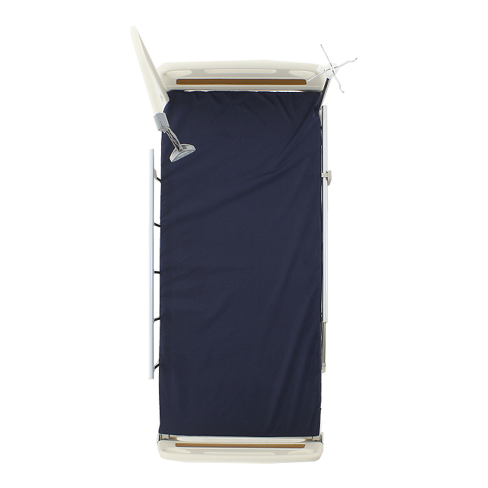 Ложемент разделен на 4 секции, угол наклона двух из которых (головной и ножной — 80 и 45 градусов соответственно) регулируется с помощью вышеуказанного привода. Само ложе, как и весь каркас, изготовлено из высокопрочной стали с полимерно-порошковым покрытием, создающим дополнительную защиту от коррозии даже в случае использования агрессивных дезсредств.