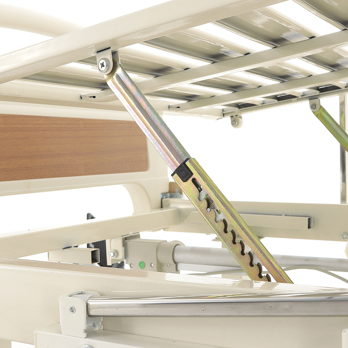 Главное ее преимущество — гибридный привод, дающий возможность управлять углом наклона секций даже при отсутствии электричества. А это означает, что пациенту не придется терпеть дискомфорт при возникновении перебоев в системе энергообеспечения.