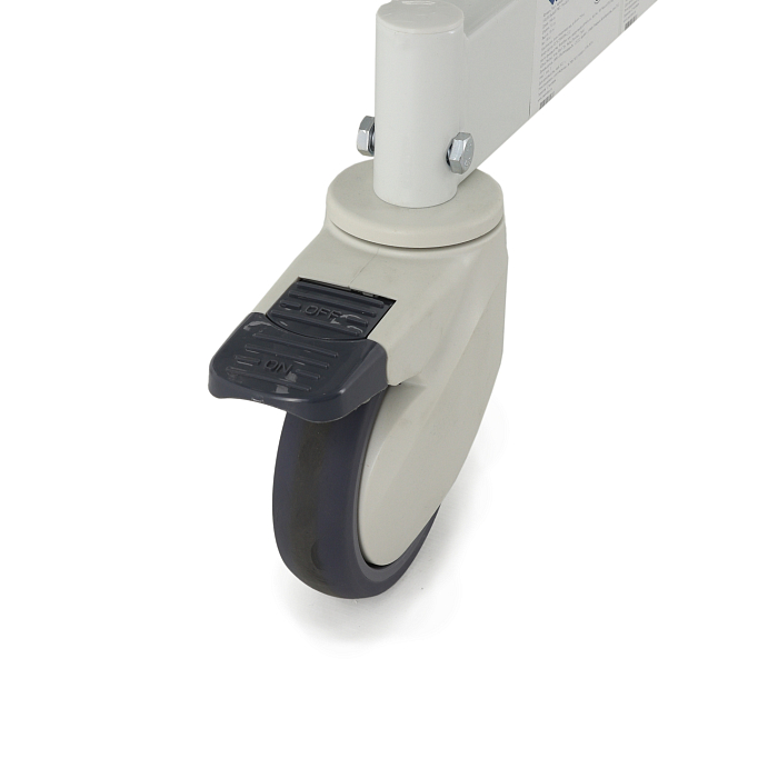 - самоориентирующиеся колеса (рояльного типа), с возможностью поворота на 360⁰ с индивидуальным тормозом на каждое колесо