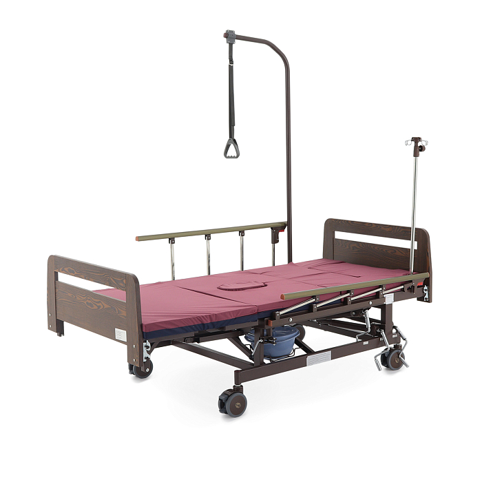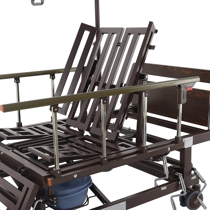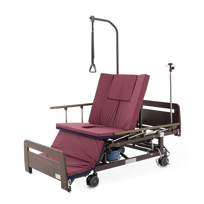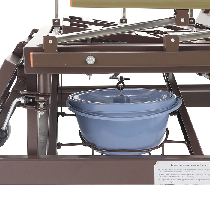 - туалетное устройство — медицинская кровать с туалетом позволяет пациенту избежать лишних движений при справлении естественных надобностей, что очень важно при тяжелых травмах и заболеваниях.