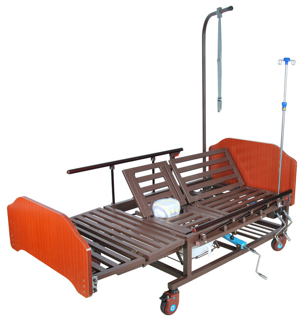 В комплектацию входит: боковые ограждения, инфузионная стойка, дуга для подтягивания и стандартный матрас для медицинской кровати.