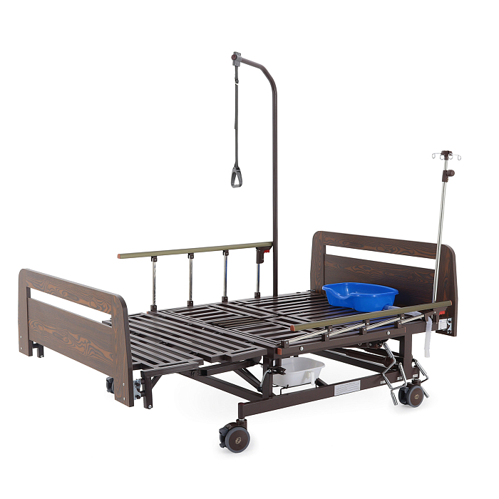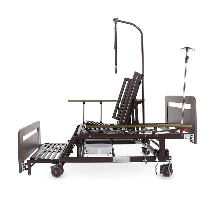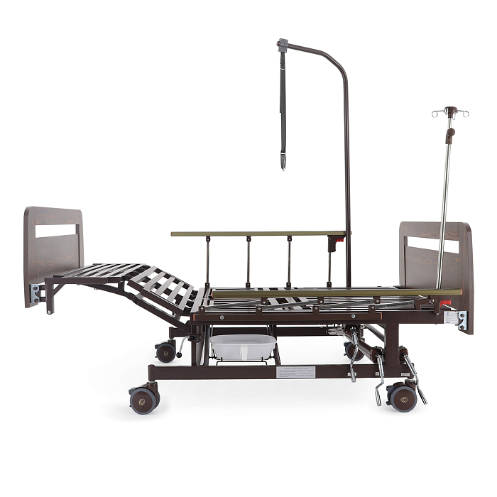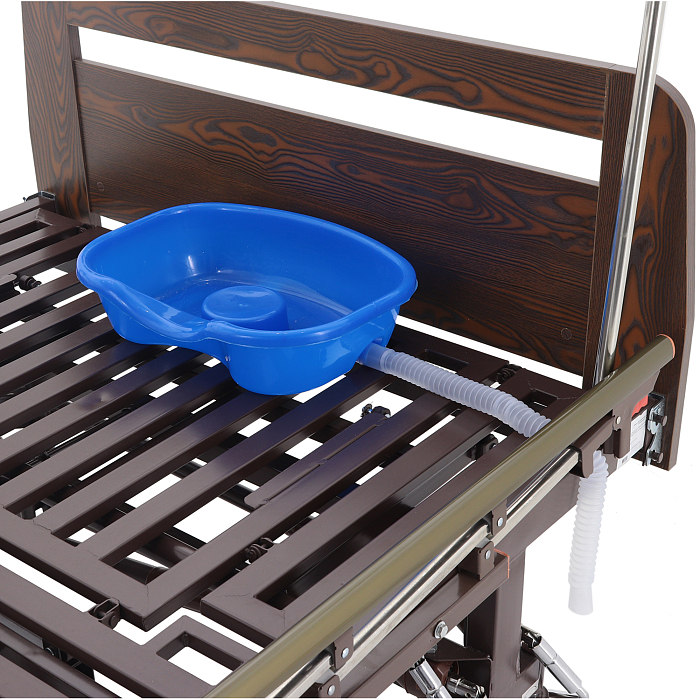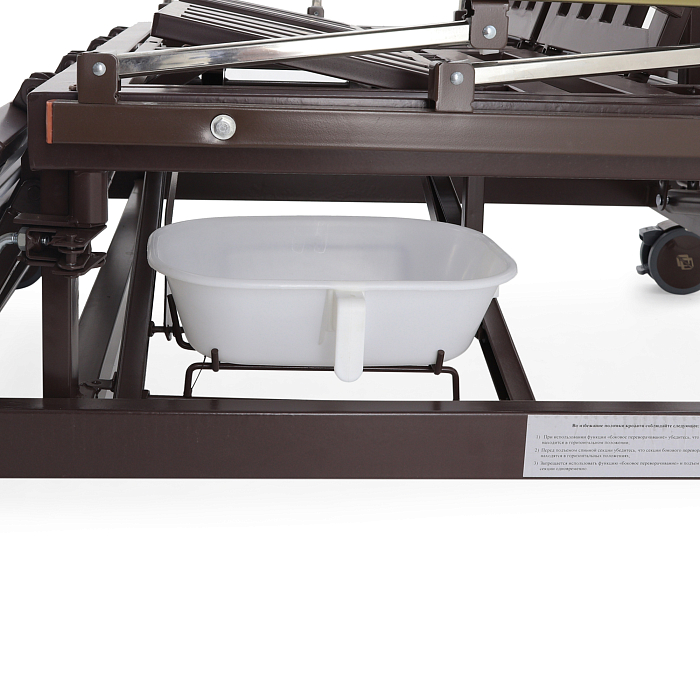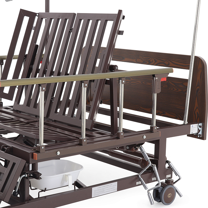 - туалетное устройство — медицинская кровать с туалетом позволяет пациенту избежать лишних движений при справлении естественных надобностей, что очень важно при тяжелых травмах и заболеваниях.