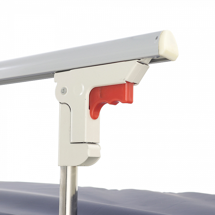 Складные боковые поручни обеспечивают безопасность. При этом не мешают медперсоналу выполнять свои функции по уходу за больным.