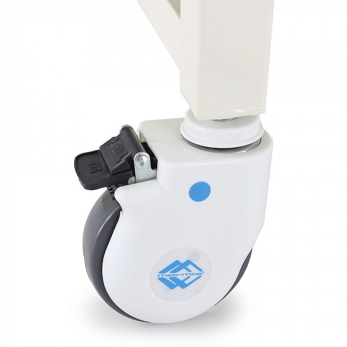 Кровать установлена на колесики. Каждое из них имеет встроенный тормоз, что предотвратит случайное движение кровати.