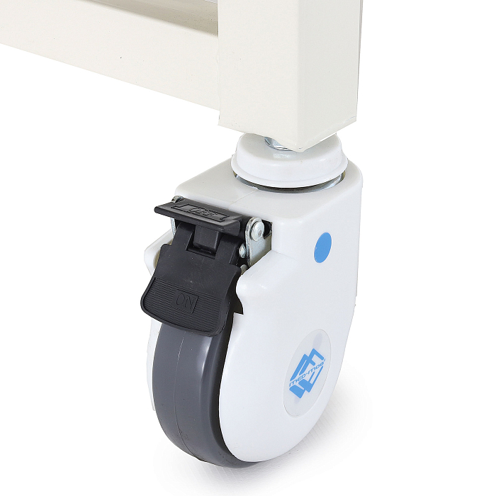 Кровать установлена на колесики. Каждое из них имеет встроенный тормоз, что предотвратит случайное движение кровати.