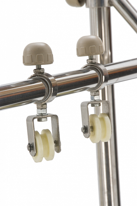 Тракционная система изготовлена из нержавеющей стали, стойкой как к воздействию воды, так и дезинфицирующих средств.