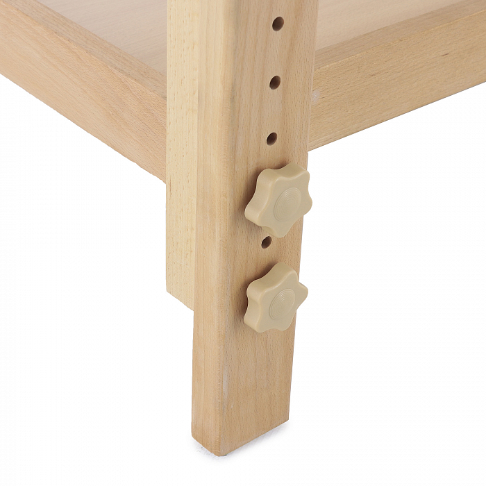 - Рама модели из натурального бука выдерживает нагрузку до 300 кг. Гарантия на нее действует целых 3 года. Под ложем располагается широкая полка для разнообразных аксессуаров, полотенец и т.д., изготовленная из того же материала, что и рама.