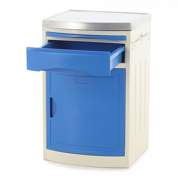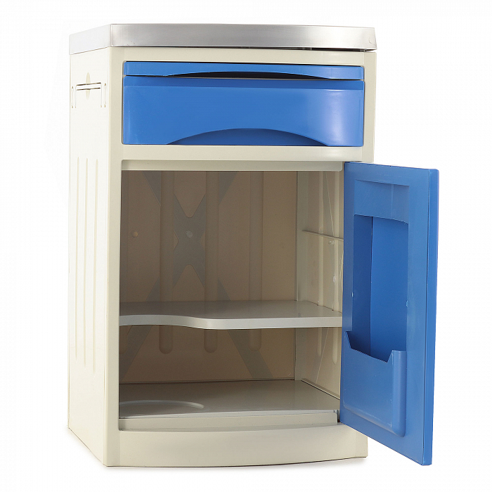 - Мебель используется для хранения лекарств, личных вещей и белья. Колеса позволяют без труда передвигать приспособление. Конструкции устанавливаются возле кровати пациента.