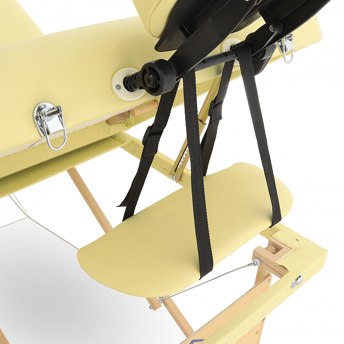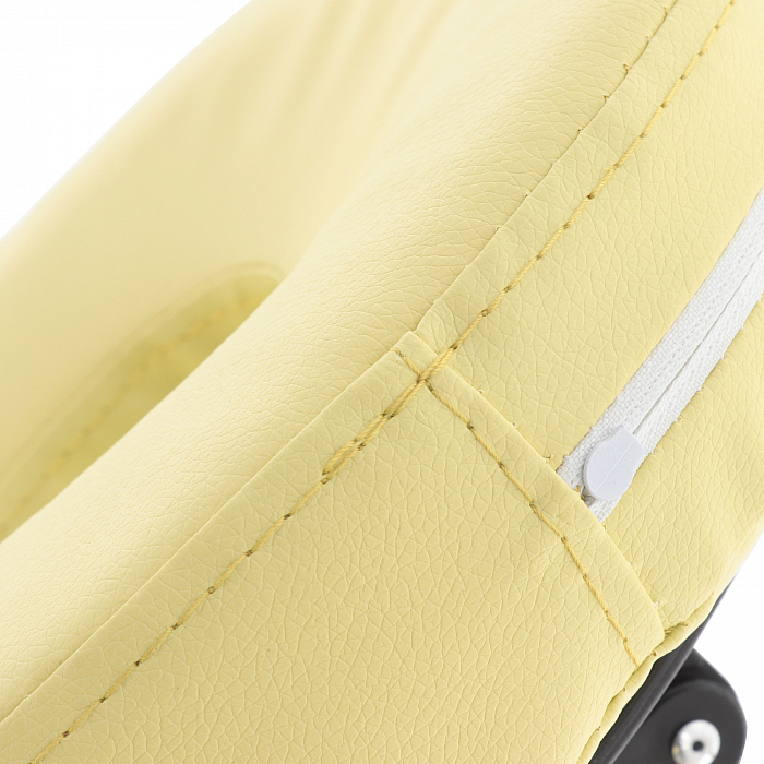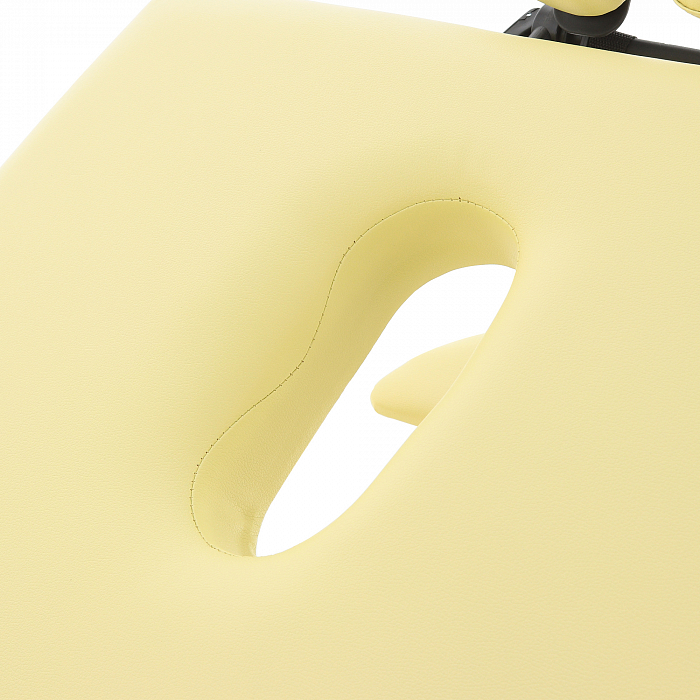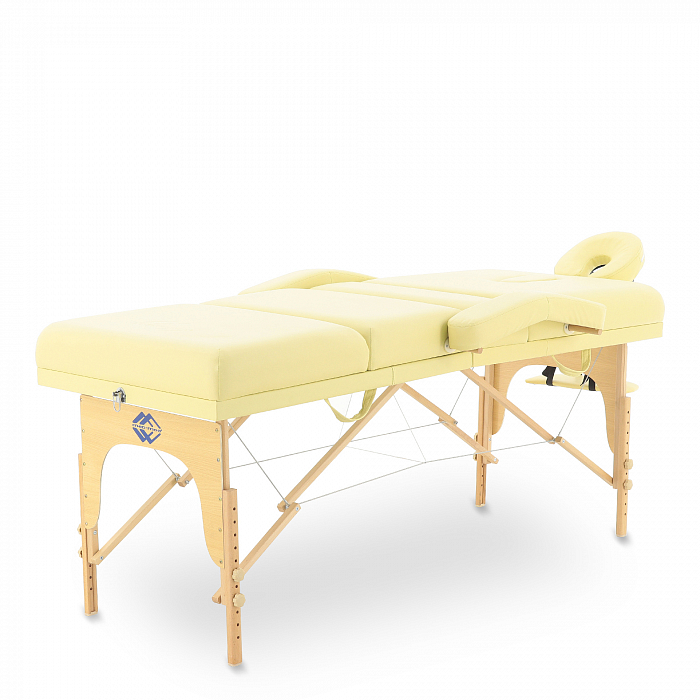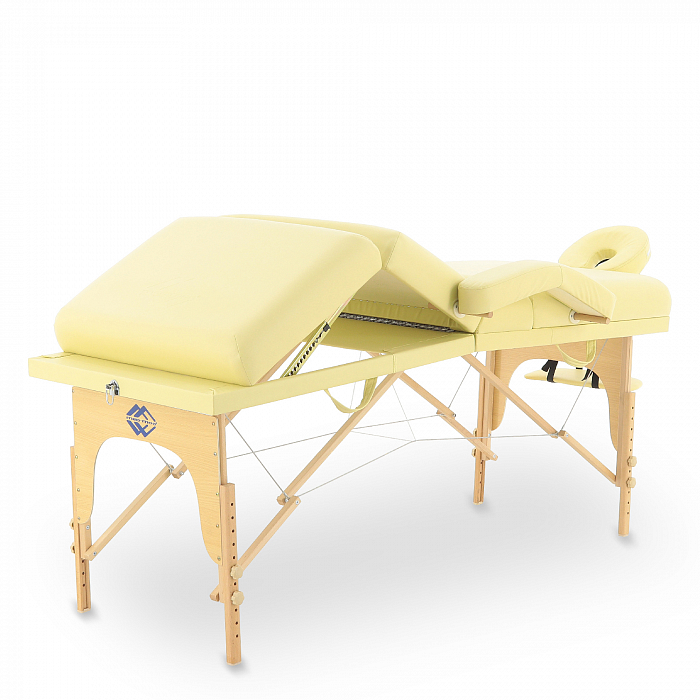 - Материалом для покрытия служит винил-люкс. Он устойчив к механическим повреждениям, влиянию влаги, не теряет своей формы, а также приятен на ощупь. В качестве наполнителя служит поролон толщиной 7 см. Стол можно регулировать по высоте в зависимости от проводимой процедуры. Данная модель отлично подойдет для массажа различного типа, а также косметологических процедур.