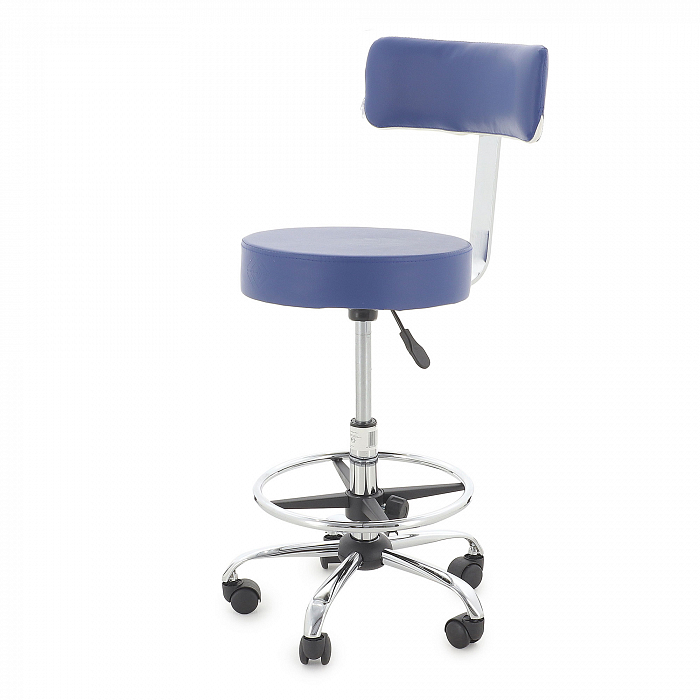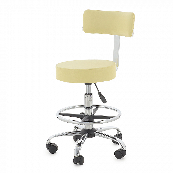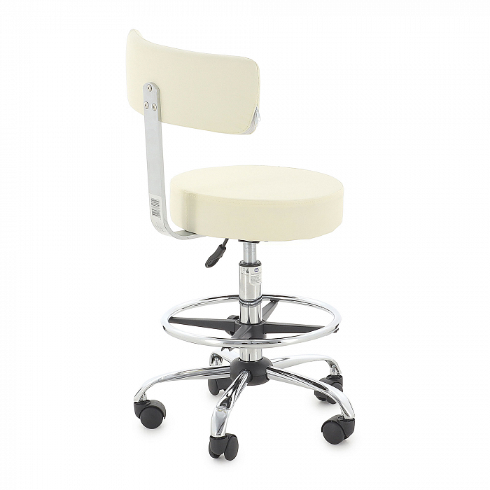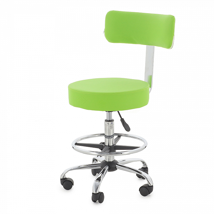 - Круглое сидение имеет оптимальный размер, чтобы специалисту было на нем комфортно сидеть. А утолщенный слой поролона создаст ощущение мягкости. Спинка выполнена в форме полукруга, создавая спинным мышцам оптимальную опору. Обивка изготовлена из качественного винил-люкса, долговечного в эксплуатации и простого в уходе. А красивые расцветки добавят интерьеру стильности, подчеркнув его особенности.