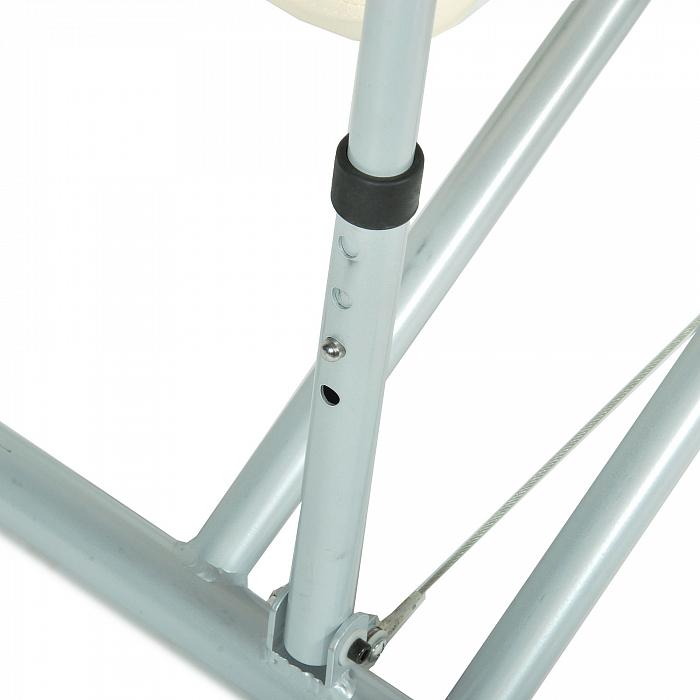 Рама изготовлена из алюминия. Расписывать все отличительные свойства этого материала нет смысла. Остановимся на самых главных — легкость, прочность и стойкость к коррозии. За счет первого свойства снимается вопрос трудностей с перемещением. За счет второго — риск малого срока службы. А третье говорит о том, что сложностей с уходом у вас не возникнет. И не забудем про обивку из винил-люкса — стойкую к истирания, простую в уходе, невосприимчивую к воздействию ультрафиолета.
