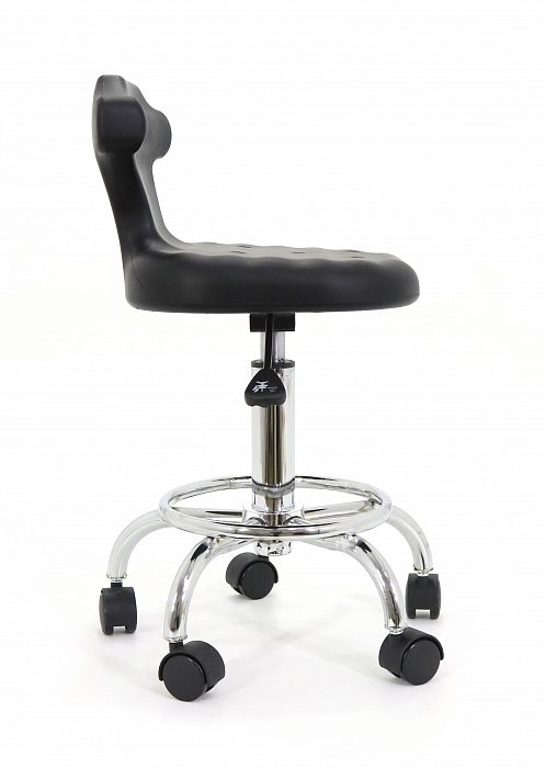 Без механизма регулировки высоты не обойдется ни один стул мастера. Есть он и здесь. С его помощью, одним движением руки специалист может поднять/опустить сиденье на оптимальный уровень.