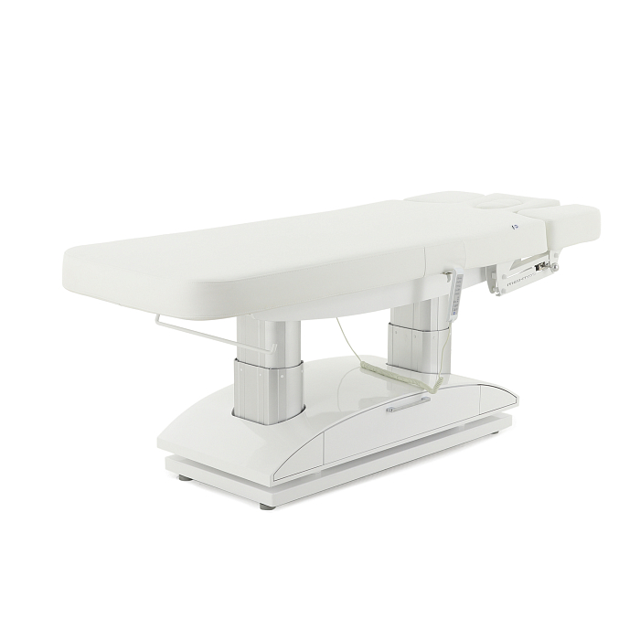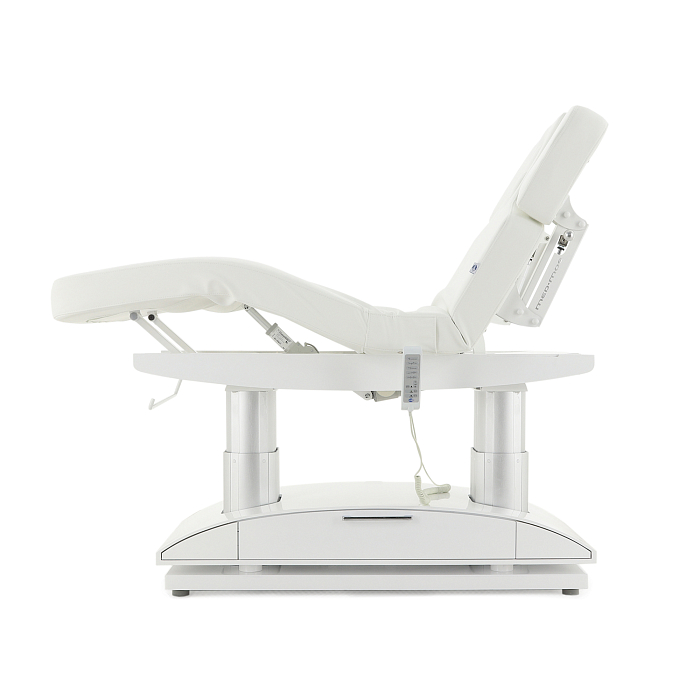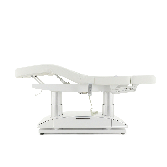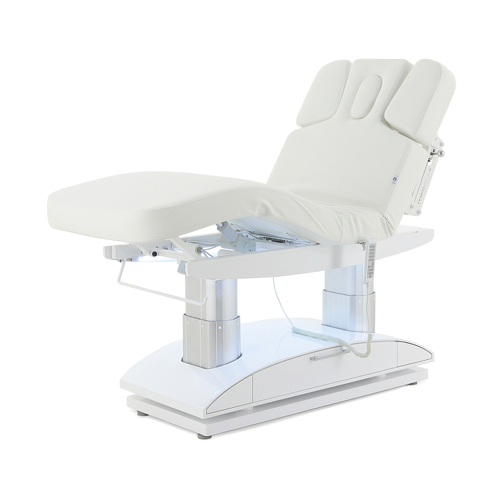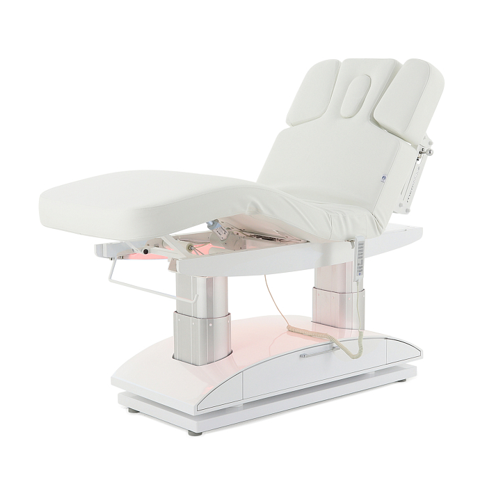 Стол массажный электрический стационарный (4 мотора, 6 функций) с ящиком для принадлежностей и декоративной подсветкой основания (14 режимов)