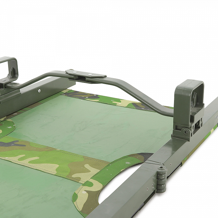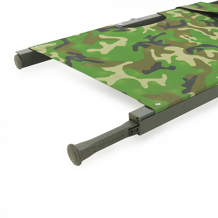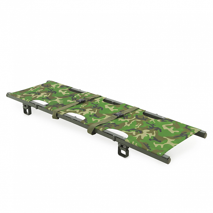 Прочные складные носилки отлично подходят для эксплуатации в полевых условиях. Активно применяются в вооружённых силах при эвакуации раненых. Модель оснащена четырьмя металлическими опорами, которые существенно расширяют функционал изделия. Носилки можно использовать как перевязочную кушетку, кровать для полевого госпиталя или операционный стол.