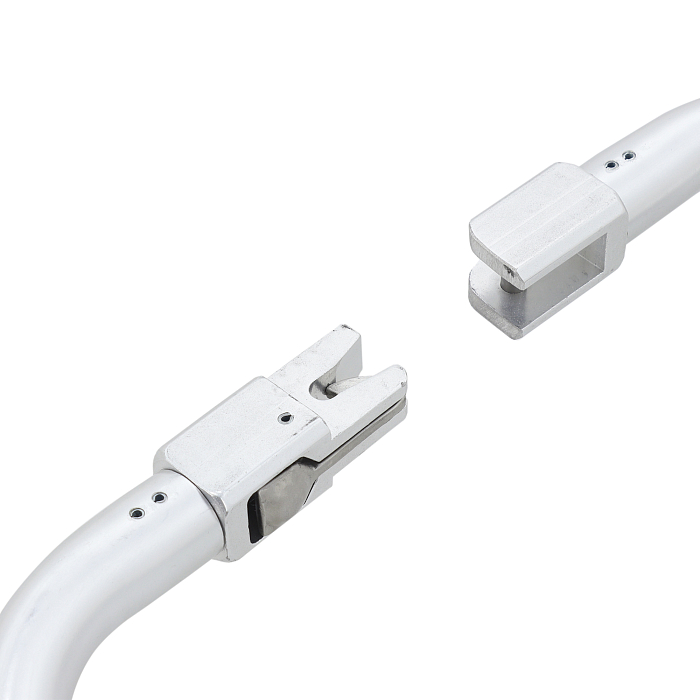 - Автоматическая фиксация (защелкивающийся замок) при соединении двух половин носилок, с кнопкой разблокировки