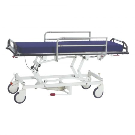 - Высота тележки-каталки регулируется с помощью гидравлической ножной педали.