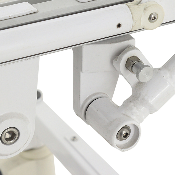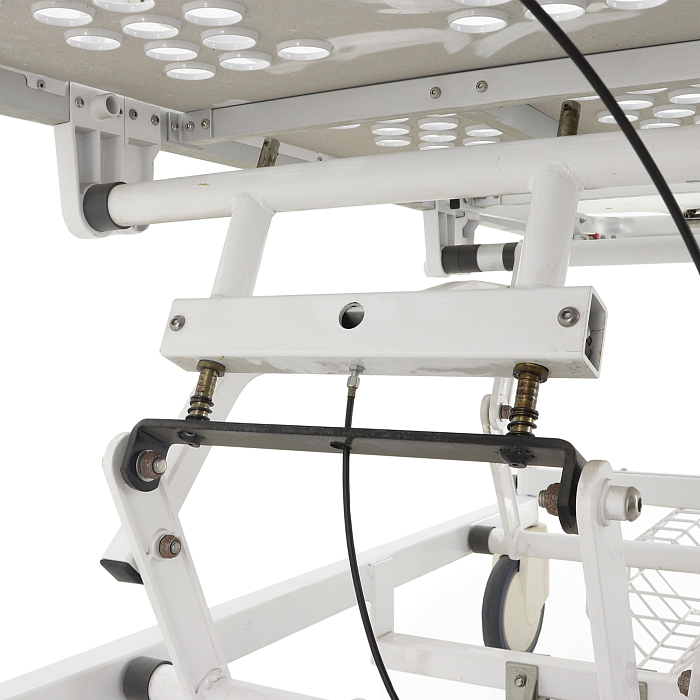 - На верхней раме каркаса, в ножной области, пузырькового индикатора для контроля горизонтального положения ложа