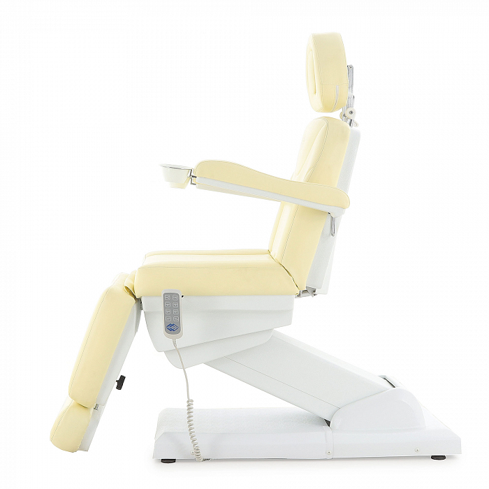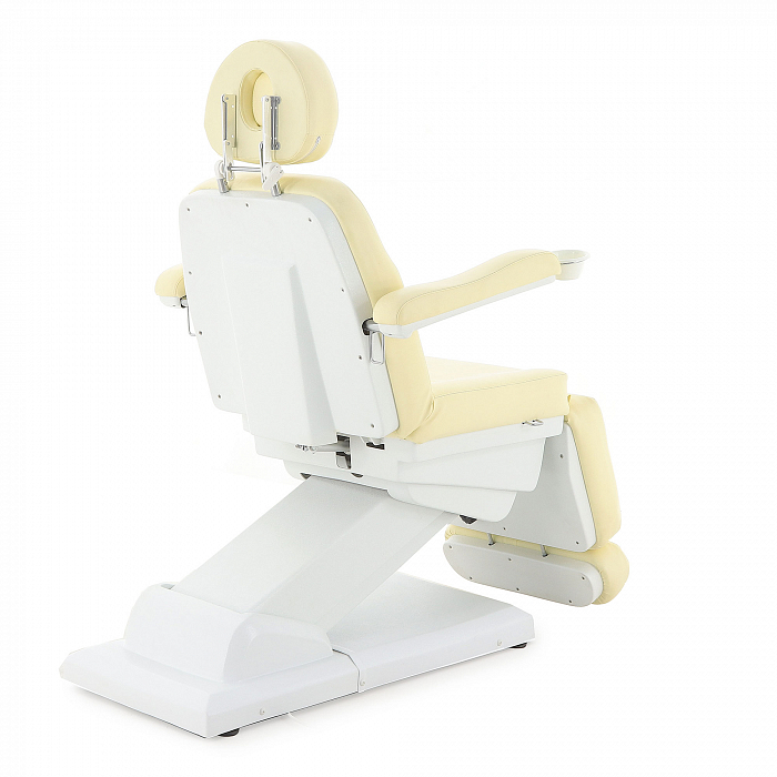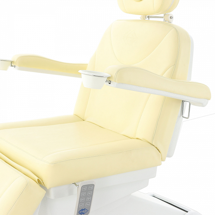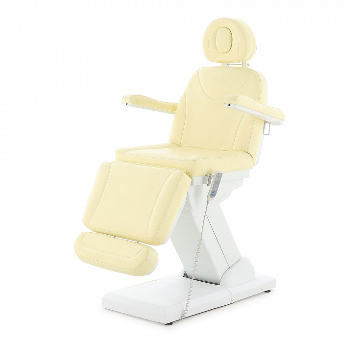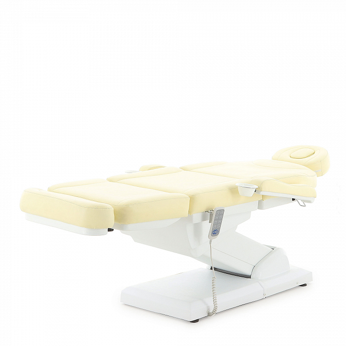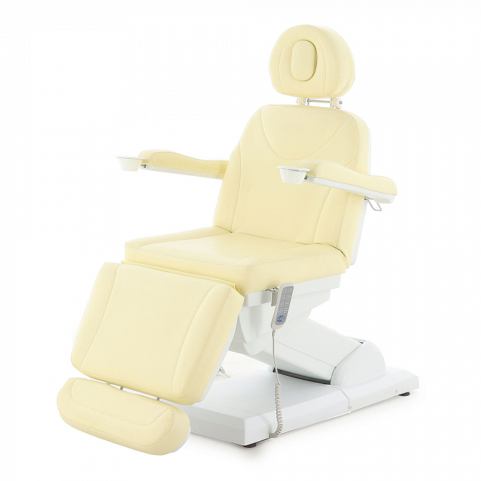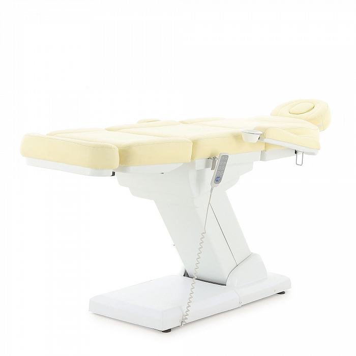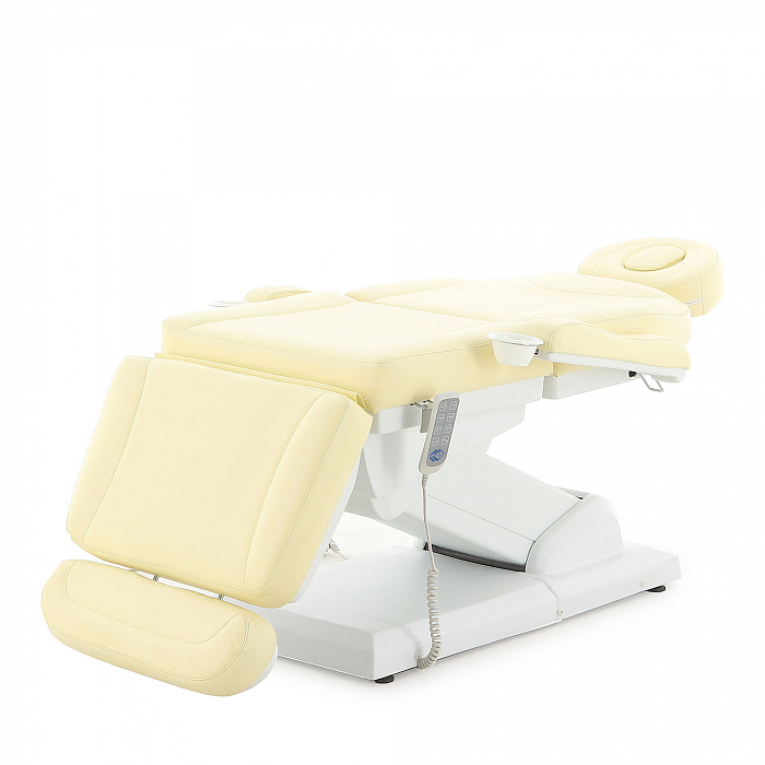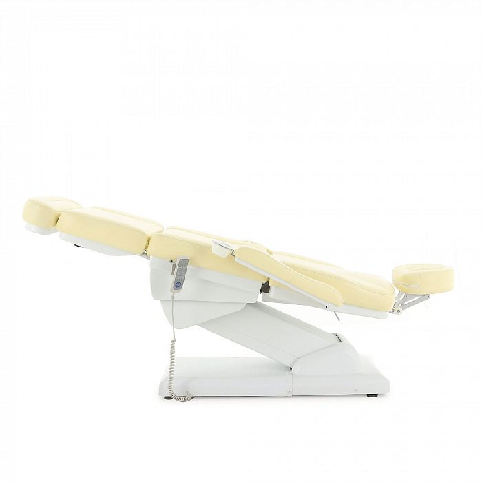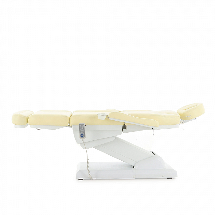 - Стол оснащено шестью разными функциями, благодаря которым можно настраивать положение оборудования. Это позволит подобрать наиболее комфортную позу для конкретной процедуры. Регулировка высоты стола – электрическая. Всего кресло имеет четыре мотора, благодаря которым можно быстро настраивать данное оборудование. Максимально возможная нагрузка на конструкцию составляет 180 килограмм. Модель способна раскладываться в полностью горизонтальное положение. Есть удобные подлокотники, которые можно снимать, если этого требует процедура. Дополнительное есть подголовник для большего комфорта клиента.
